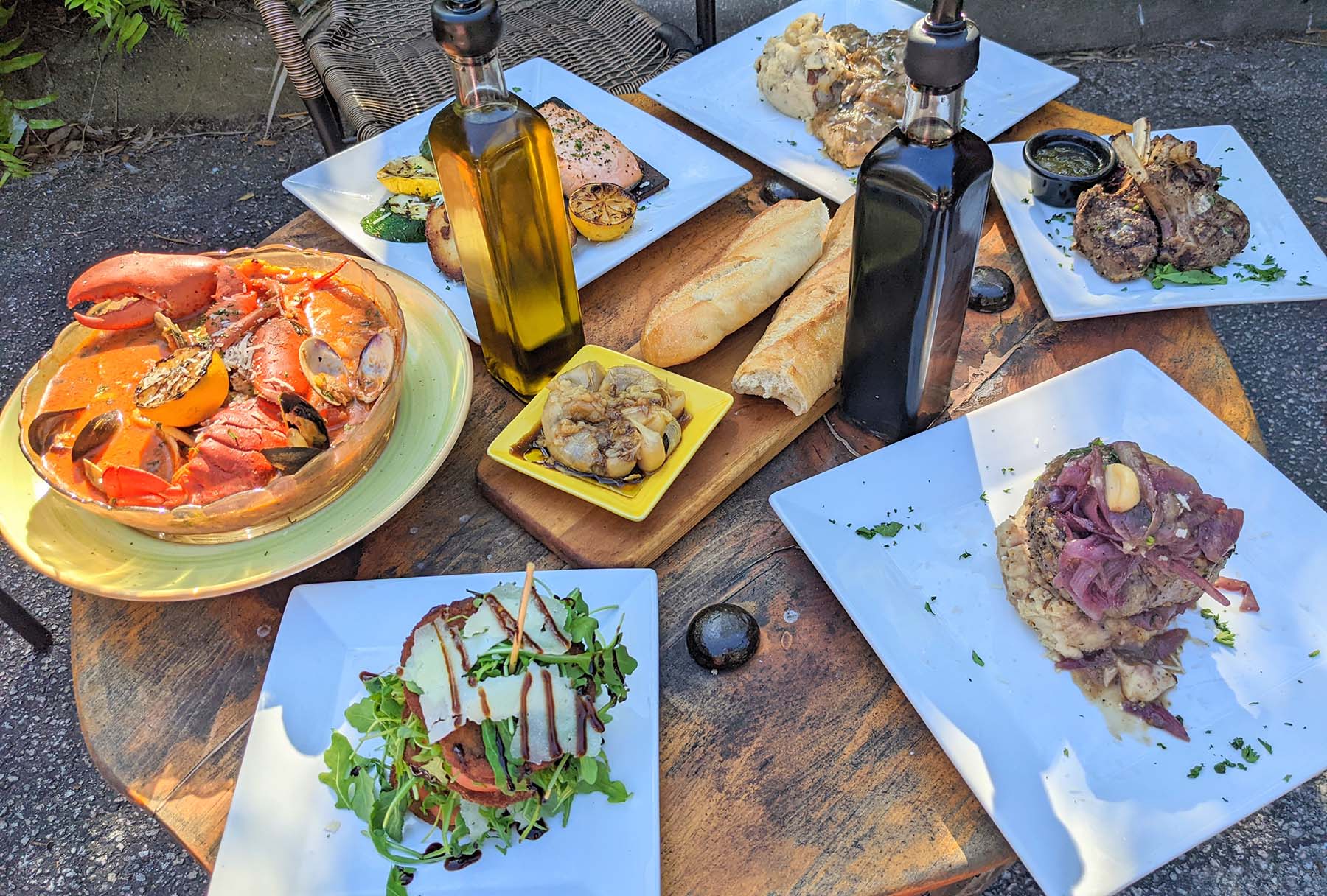 shrimp, scallops, calamari, mussels, and cherrystone clams sautéed in white wine and garlic butter, tossed with roasted garlic, tomatoes, fresh herbs and linguini